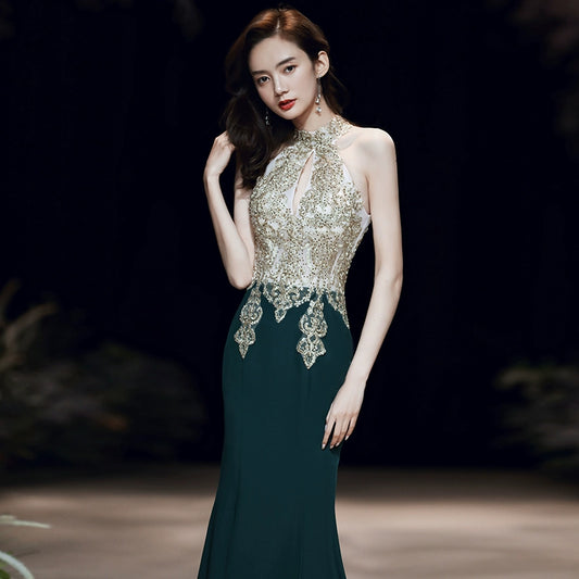 Robe longue en queue de poisson licou haut de gamme, robe de soirée pour dames
